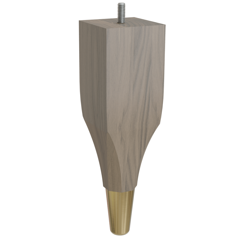 The feet are made in the USA with real North American hardwoods; the slipper cups are made from real brass and given a finish. Theyre available in three wood species options (hardwood, white oak and walnut) and four brass finish options (antique, polished, satin and chrome with flat black available for Round Tapered and Cassa). Theyre easy to assemble with included hardware and even easier to install with pre-attached hanger bolt at the top. Felt pads are not included.