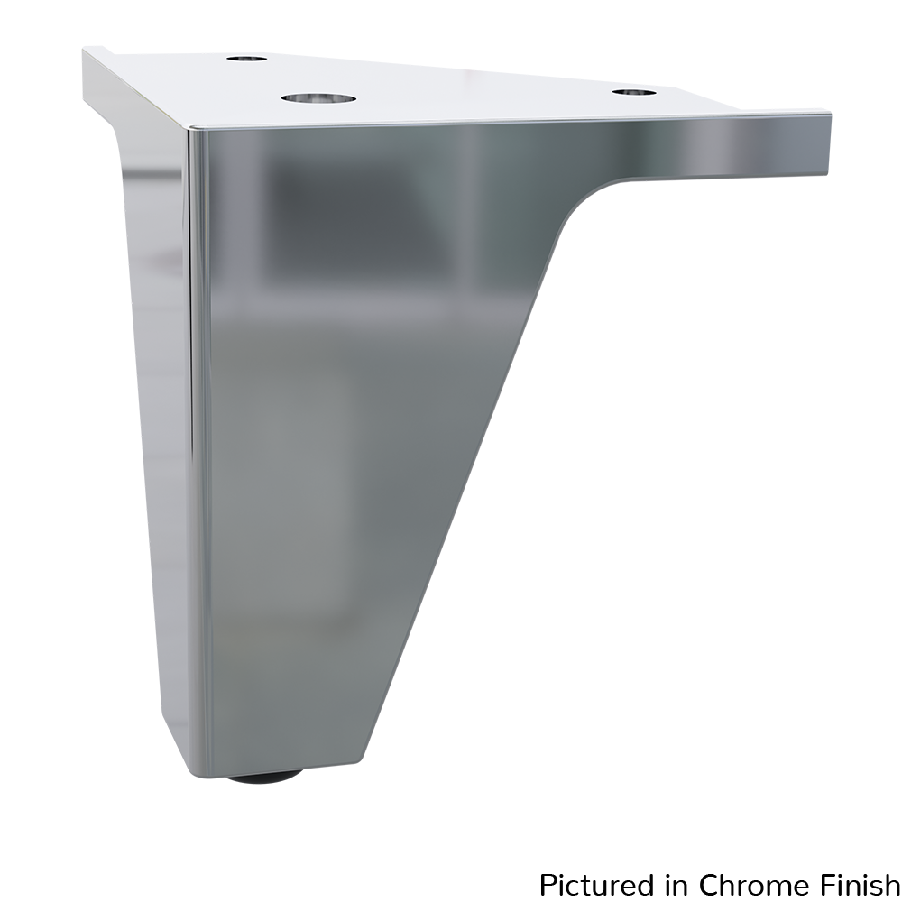 The 4″ Apex Foot adds luxury Chrome or Flat Black accents to contemporary designs. Suitable for sofas, chairs, cabinets, coffee tables, beds, and other furniture. To install, simply screw the leg directly into the furniture frame through the screw holes on the top of the leg.